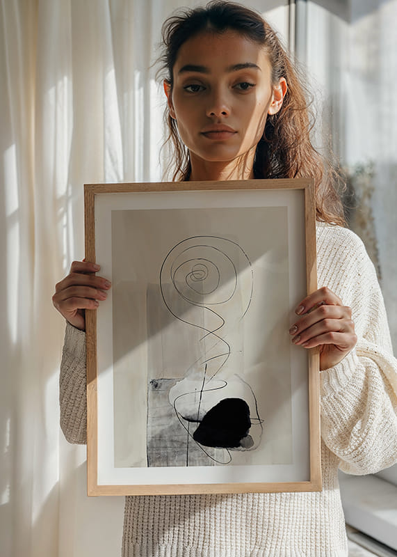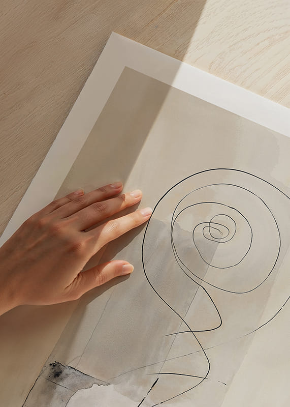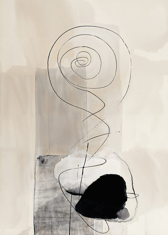 Dieses Poster fängt eine subtile Spirale ein, die endlos über einem verträumten Hintergrund aus sanften Erdtönen schwebt. Der Tanz der Linien erzeugt ein Gefühl von Ruhe und Unendlichkeit, wo abstrakte Formen miteinander verschmelzen.