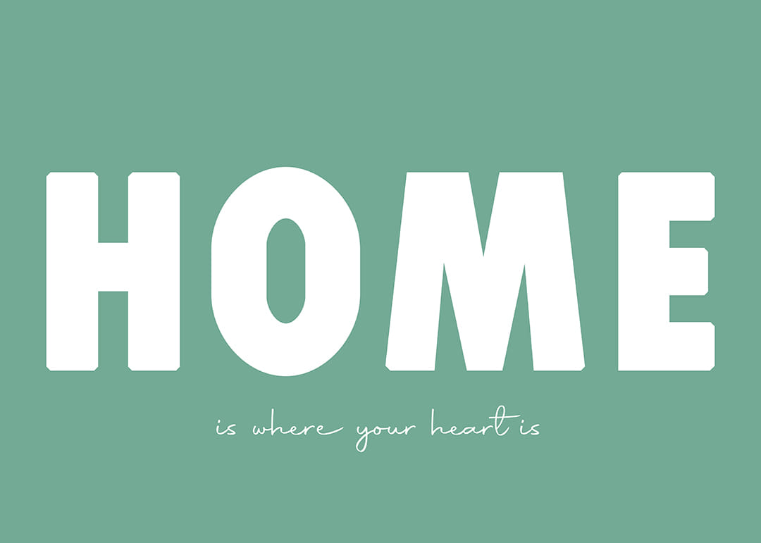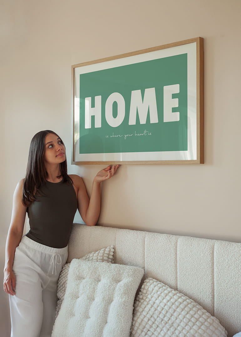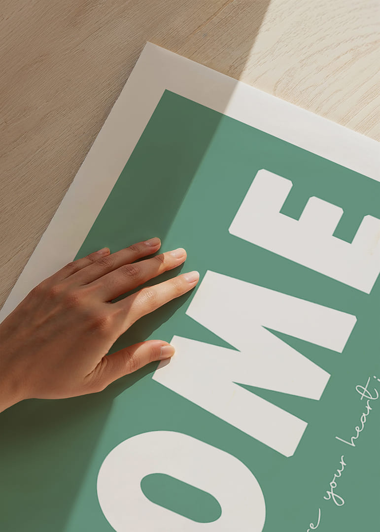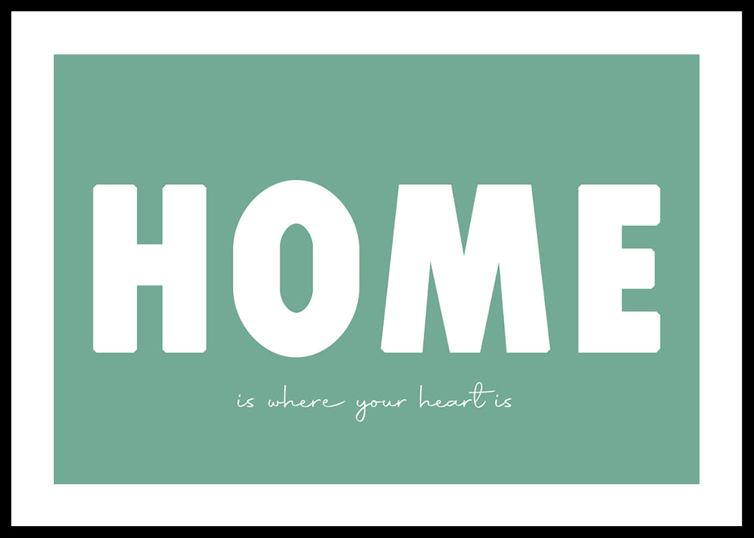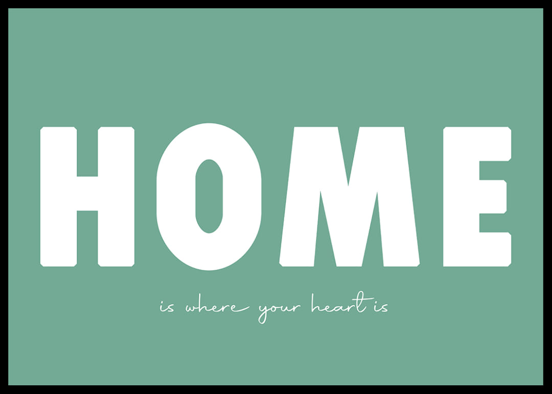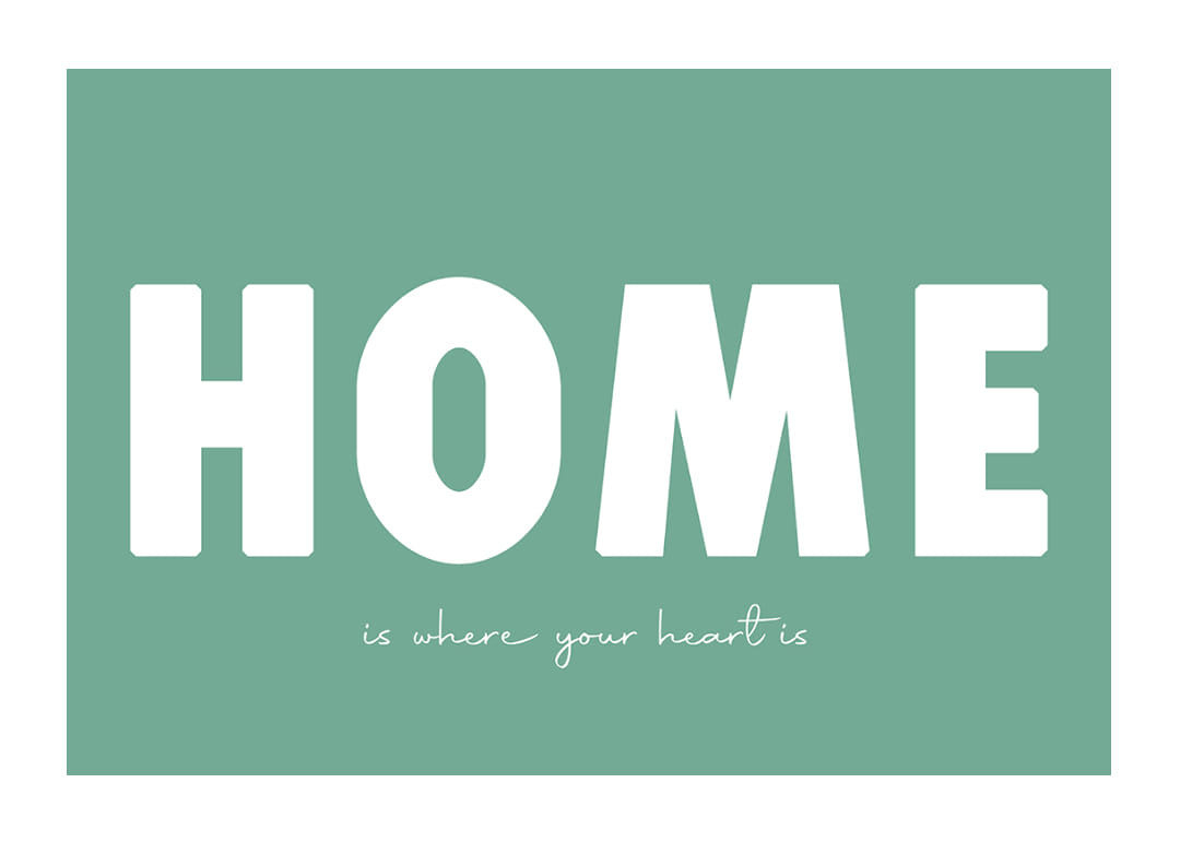 Dieses Poster vermittelt mit seiner einfachen, aber kraftvollen Botschaft sofort ein Gefühl von Wärme und Gemütlichkeit. Der grüne Hintergrund wirkt beruhigend, während die großen Buchstaben eine emotionale Tiefe erzeugen, die berührt. Das Poster eignet sich perfekt, um das Herzstück des Hauses zu betonen und eine einladende Atmosphäre zu schaffen, die an die Bedeutung des Zuhauses erinnert. Ein zeitloses Dekorationselement für jeden Raum.