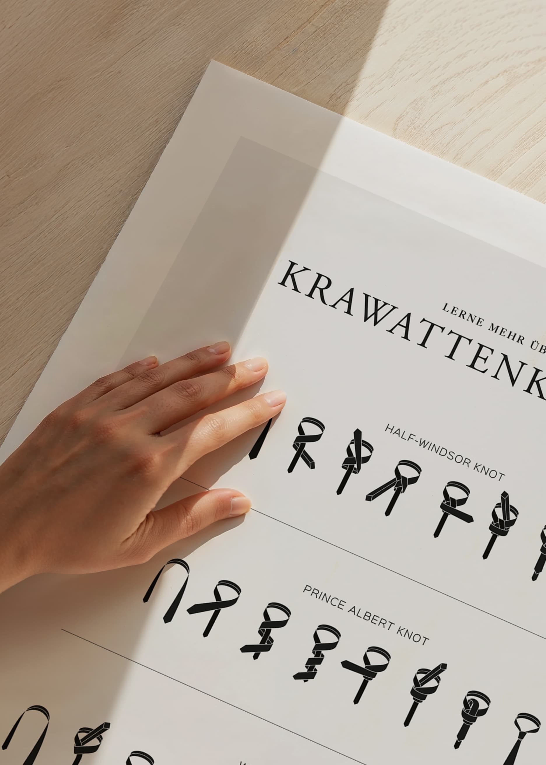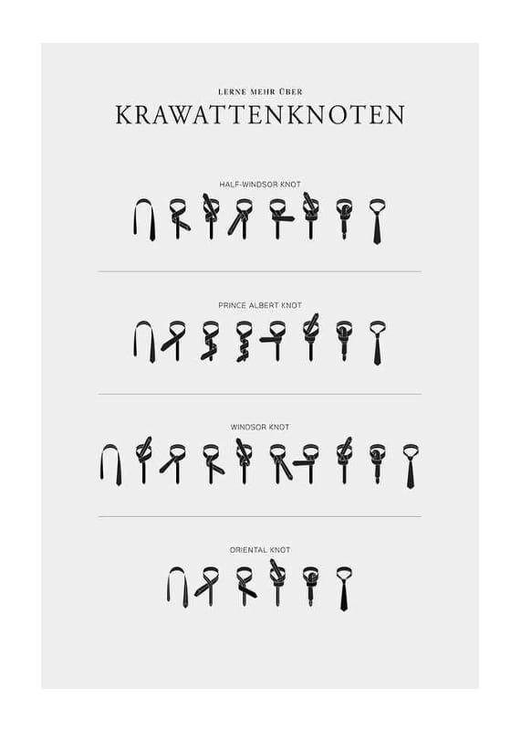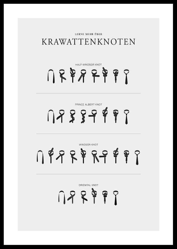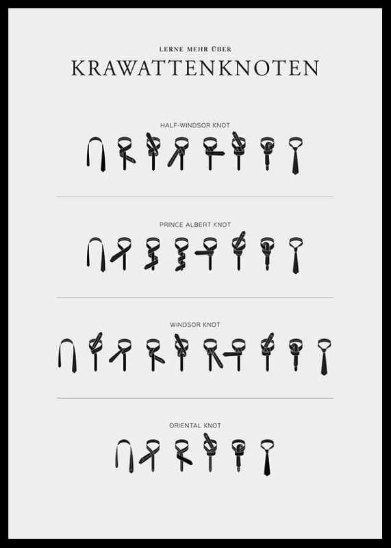 Stilvolle Poster aus der Kategorie Fakten und Wissen mit Abbildungen zum Binden der häufigsten Knoten. Unsere Plakatsammlung in der Kategorie Fakten und Wissen wird als trendiges Design für Bildungszwecke erstellt.