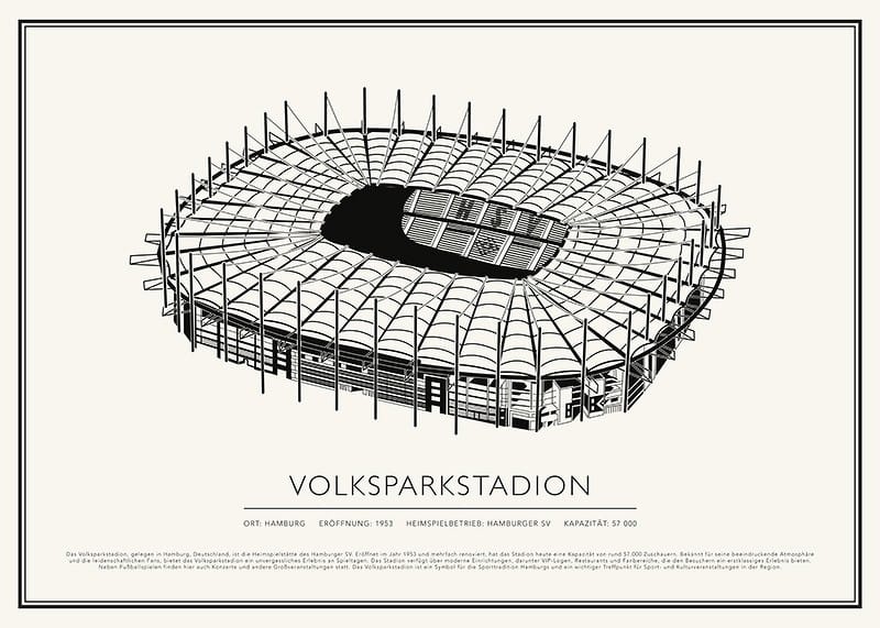Das Volksparkstadion, gelegen in Hamburg, Deutschland, ist die Heimspielstätte des Hamburger SV. Eröffnet im Jahr 1953 und mehrfach renoviert, hat das Stadion heute eine Kapazität von rund 57.000 Zuschauern. Bekannt für seine beeindruckende Atmosphäre und die leidenschaftlichen Fans, bietet das Volksparkstadion ein unvergessliches Erlebnis an Spieltagen. Das Stadion verfügt über moderne Einrichtungen, darunter VIP-Logen, Restaurants und Fanbereiche, die den Besuchern ein erstklassiges Erlebnis bieten. Neben Fußballspielen finden hier auch Konzerte und andere Großveranstaltungen statt. Das Volksparkstadion ist ein Symbol für die Sporttradition Hamburgs und ein wichtiger Treffpunkt für Sport- und Kulturveranstaltungen in der Region.