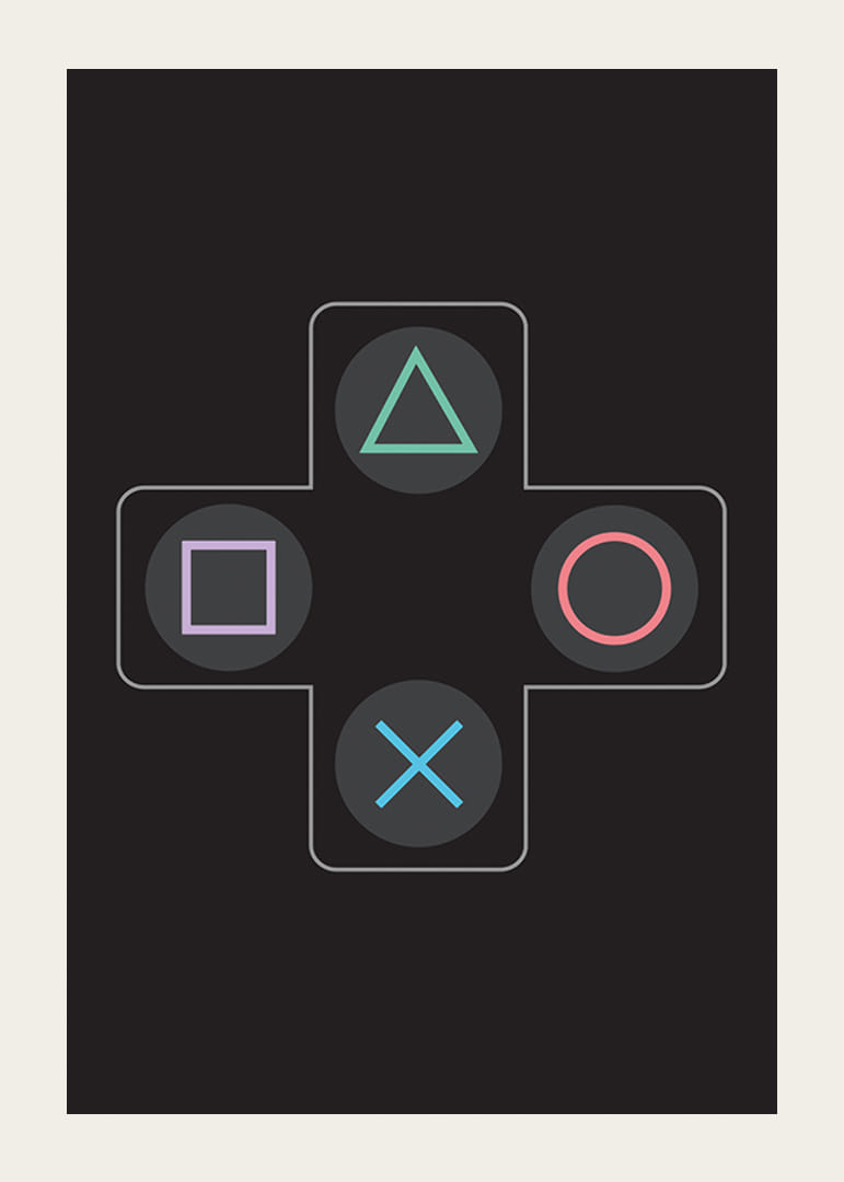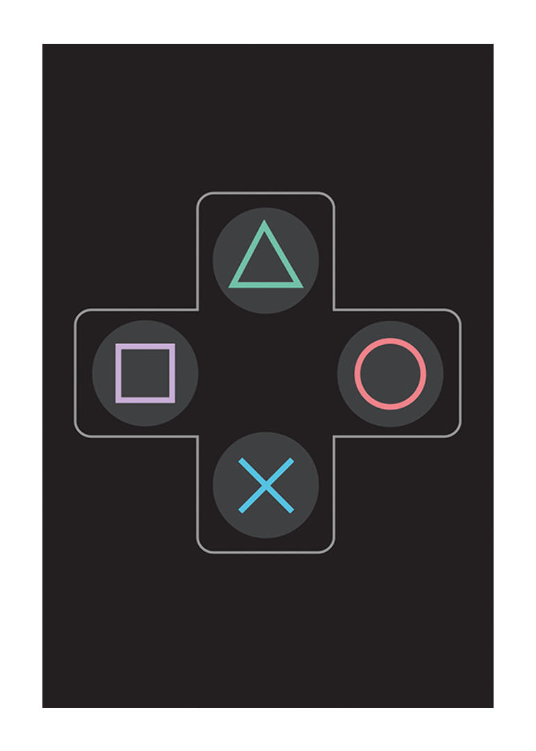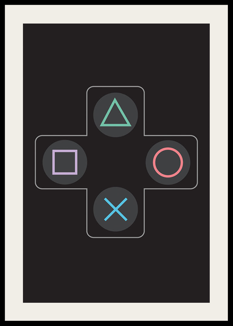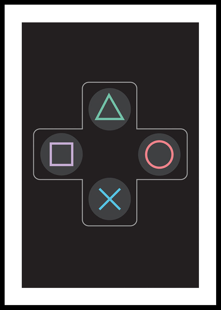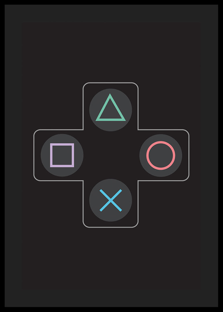 Unsere Posterserie „PS Gaming Controller“ feiert Gaming mit einem minimalistischen und nostalgischen Design. Einzeln stilvoll, wirken aber cool, wenn sie in einer Serie von 3 Postern zusammengehängt werden. Mit den sofort erkennbaren Dreieck-, Kreis-, Kreuz- und Quadratsymbolen in leuchtenden Farben vor einem stilvollen dunklen Hintergrund ist dieses Poster ein Muss für alle Gamer. Perfekt für das Spielzimmer, das Büro oder das Wohnzimmer – eine minimalistische Hommage an die Freude am Spielen und ikonische Spielerlebnisse.