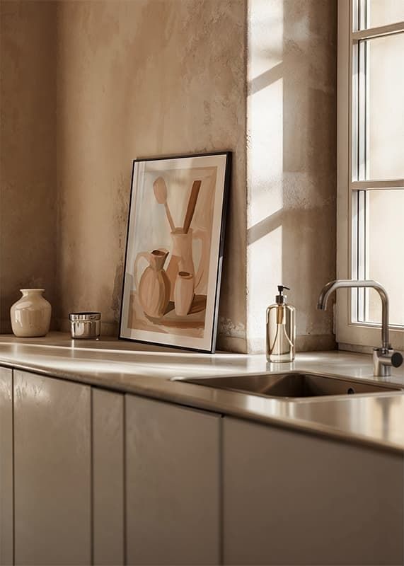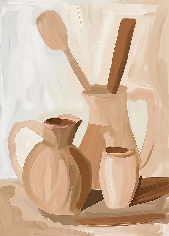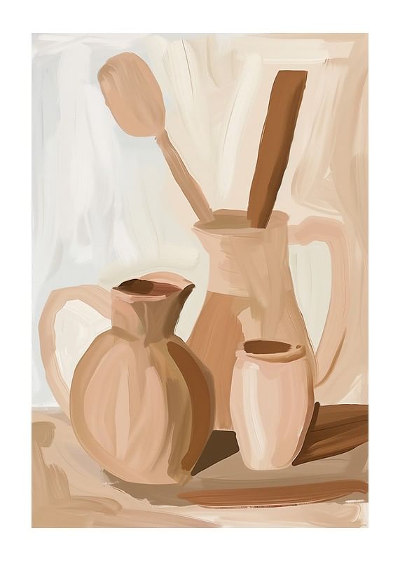 Entdecken Sie eine Welt subtiler Eleganz mit diesem bezaubernden Poster in sanften, erdigen Farbtönen. Warme Brauntöne erzeugen ein zeitloses Gefühl von Ruhe und Harmonie und eignen sich perfekt, um Ihr Wohnzimmer oder Ihre Küche aufzuwerten. Dieses Kunstwerk strahlt Einfachheit und Funktionalität aus, eine Hommage an die Schönheit des Alltags.
